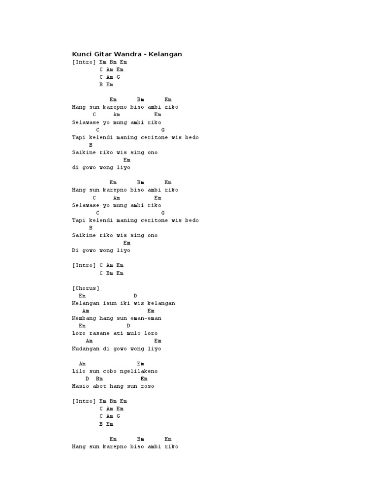 Chord Kunci Gitar Ati Nelongso Pawestri. Genre musik ini mempunyai unsur unsur melayu, india dan arab. • lirik dan kunci (chord) gitar lagu kependem. Ning njero atiku g f#m a aku pingin iso muter wektu d a bm a supoyo nemokke awakmu.