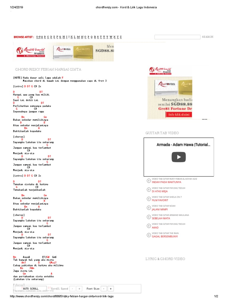 Chord walau habis terang by peterpan. Gm c tak membuatku jera tetap berharap f dm ku yakin seseorang kan. Gm c datang kepadaku menggenggam tanganku. verse c dm.ku rasa ku sedang jatuh cinta g c.karena rasanya ini berbeda c dm.oh apakah ini memang cinta g c c7.selalu berbeda saat menatapnya. Dibawah ini kami sajikan untuk anda kunci gitar penantian berharga original. Lagu berjudul penantian berharga ini juga sekaligus merupakan single kedua dari rizky.