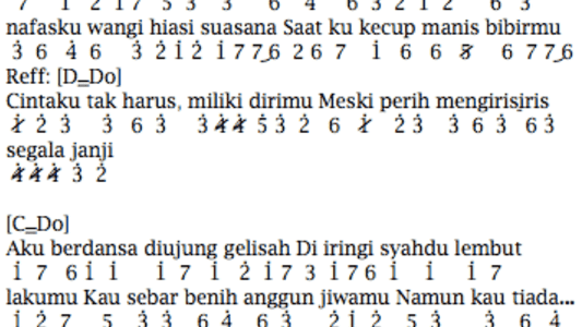 Lagu tombo ati ini sebetulnya adalah lagu tradisional jawa yang diciptakan oleh sunan bonang. Kali ini kami akan membagikan notasi angka lagunya milik penyanyi rohani opick yang berjudul tombo ati. Not balok dan not angka lagu merupakan hal yang sangat sering dicari oleh para pemain musik. 'roman picisan' merupakan salah satu lagu paling hit dari album bintang lima milik grup band dewa 19 yang rilis pada tahun 2000. Sepanjang perjalanan kariernya, dewa 19 telah menerima banyak penghargaan, baik basf awards maupun ami awards. Kumpulan lirik lagu indonesia terbaru, lirik lagu peterpan, lirik lagu ungu, lirik lagu gigi, lirik lagu slank, lirik lagu iwan fals, lirik lagu cokelat, lirik lagu letto seluruh media termasuk lirik lagu ataupun chord lagu yang terdapat disini hanyalah untuk media promosi dan pembelajaran. Kau tuliskan padaku kata cinta yang manis dalam suratmu kau katakan padaku saat ini kuingin hangat pelukmu dan belai lembut kasihmu takkan kulupa slamanya saat kau ada di sisiku.