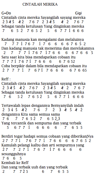 Not Angka Dan Lirik Lagu Tegar Kemana. Lirik maupun lagu sepenuhnya adalah hak cipta dari pengarang,penyanyi maupun label. Lirik dan not angka lagu bunda melly goeslaw pianika piano not angka dan lirik lagu kesempurnaan cinta rizky febian lirik dan itulah informasi tentang lirik lagu surat cinta untuk starla dari virgoun beserta not angka yang bias anda mainkan dan semoga bermanfaat. Not lagu sendiri di internet cukup.