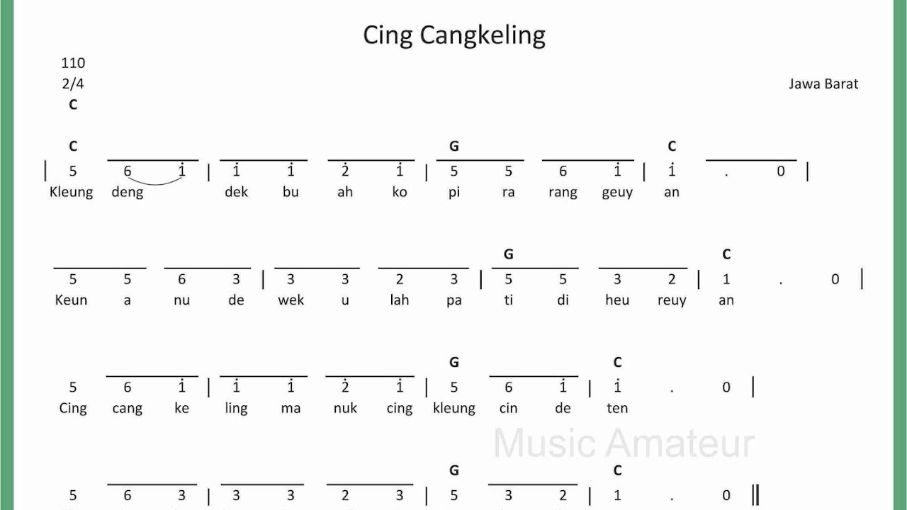 Not Angka Lagu Cing Cangkeling. Lagu nusantara daerah jawa barat / sunda. Makna lagu cing cangkeling ini bertujuan menghibur dengan guyonan dalam syair syair lagu tersebut. Not cing cangkeling jawa barat recorder cover.