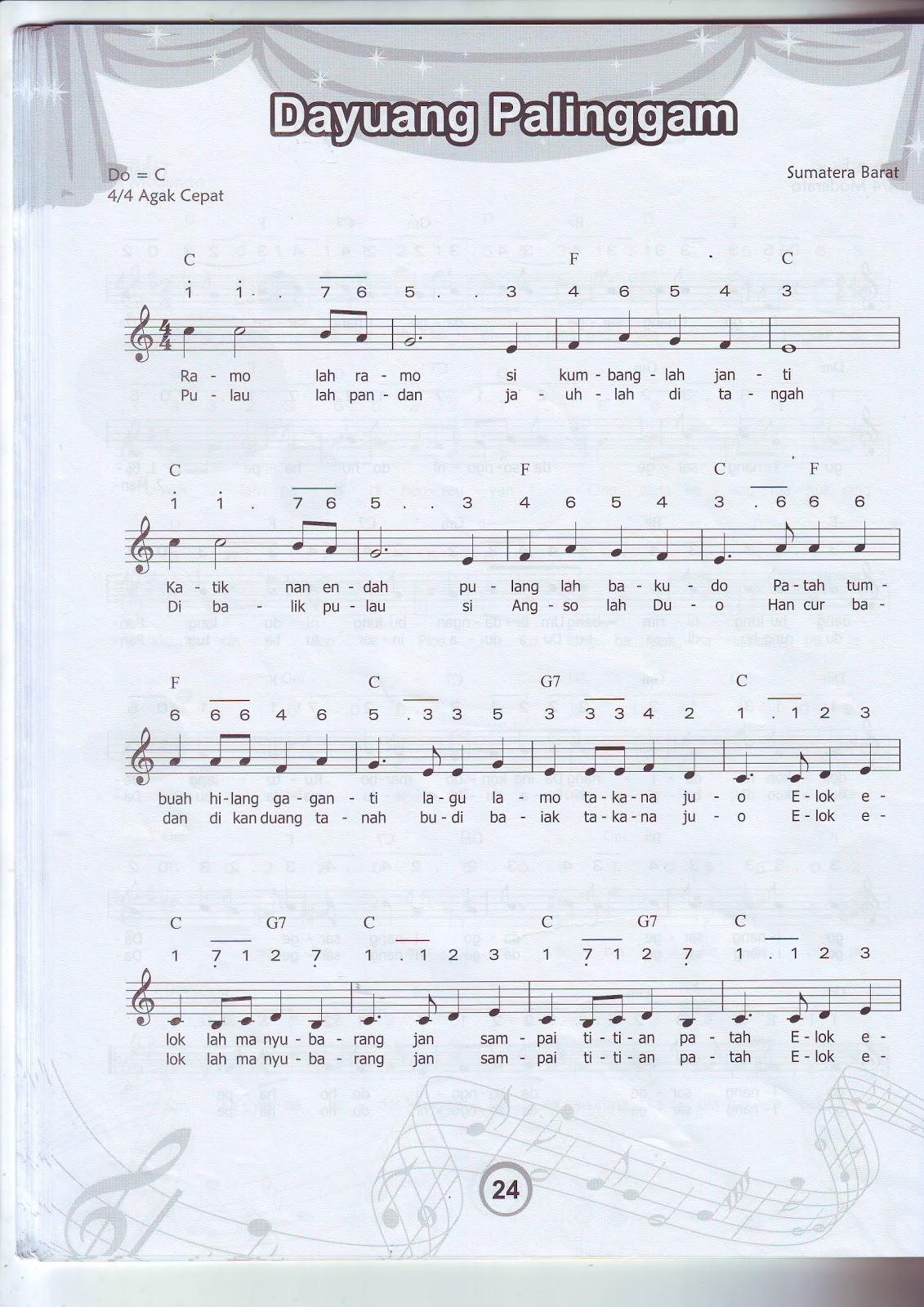 Kumpulan not angka pianika lagu terbaru. Demikian ulasan tentang lirik lagu dayuang palinggam sumatera barat beserta not angka dan artinya yang dapat kami sampaikan. Download lagu dayung palinggam secara gratis di metrolagu1.me. Download lagu dayuang palinggam (3.22mb) dan streaming kumpulan lagu dayuang palinggam (4.53mb) mp3 terbaru gratis dan enak dinikmati, video klip dayuang palinggam mp4, lirik lagu dayuang palinggam full album.