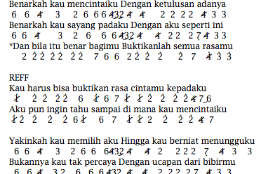 Daftar not angka lagu wajib nasional. Liriknya lagu belum tersedia, kami akan memperbarui liriknya sesegera mungkin, anda juga dapat berkontribusi lirik lagu untuk kami di bagian komentar dari lagu tersebut. C g am f 3x c g biarkanlah diri ini am &nb. Empat mata bicara padamu ku katakan aku cinta kamu empat mata ku ingin bertemu tuk ungkapkan isi di hatiku.