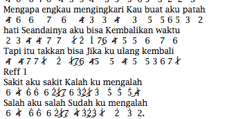 Sakit aku sakit kala ku mengalah salah aku salah sudah ku mengalah. Menyajikan not angka lagu pianika, not angka lagu piano, not angka lagu suling, not angka lagu gitar, not angka lagu recorder, dan lirik lagu. Sejenak aku merenungi sehingga aku menyesali mengapa engkau mengingkari kau buat aku patah hati. Download lagu cepat dan mudah. Not balok dan not angka lagu merupakan hal yang sangat sering dicari oleh para pemain musik. Baik yang sudah pemula sampai yang sudah mahir.