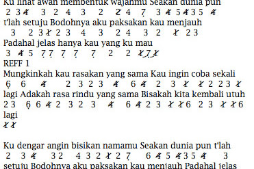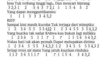 Not lagu sendiri di internet cukup. Not angka latinka aku bisa mati. Gizela, on 25 agustus 2012 at 18:20 said: Lagu ini harus kita lestarikan karena termasuk lagu wajib nasional seperti yang kami utarakan tadi.