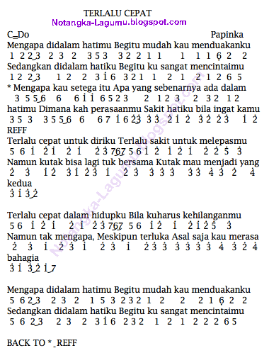 Not Angka Masih Mencintainya Papinka. C g betapa sakitnya apa yang kurasa am em tuhan kuatkanlah hatiku yang terluka f c semoga ku bisa tuk melupakannya dm g karna ku masih mencintainya. Untuk mendengarkan lagu dari artis dan musisi ascada musik lainnya, klik di sini. Ini adalah lagu panpinka terbaru.