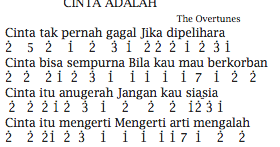 Not Angka Pianika Hakikat Sebuah Cinta. Not angka pianika lagu cinta untuk mama. Lagu ini sukses menjelaskan makna bahwa biarpun bukan yang pertama, tapi cinta pada seseorang yang di cintai saat ini adalah yang terbaik dan terahir. Not angka lagu korea , not angka lagu produce 101 , not angka pemula , not angka pianika lagu wanna one , not angka wanna one energetic , not lagu misalnya, sebuah lagu dengan kunci d, mau diubah ke kunci c.