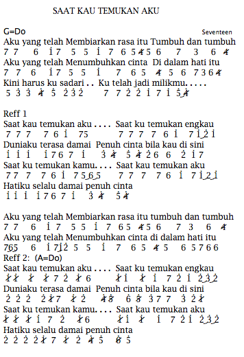Not Angka Pianika Lagu Menemukanmu Seventeen Lagu yang di nyanyikan seventeen ini adalah album dunia yang indah.