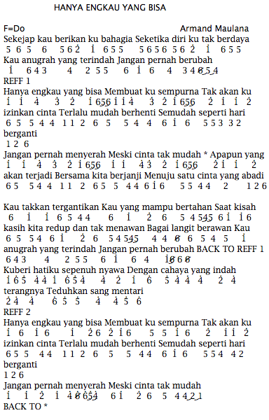 Semoga bermanfaat dan sukses yah guys… Dan itulah tadi artikel tentang not angka pianika lagu armand maulana sebelah mata. C f saat salah ku melangkah c f gelap hati penuh dosa c f beriku jalan berarah g c temuimu di surga. Not angka pianika lagu ikon love scenario. Buat anda yang sedang mencari not angka dan lirik lagu ya maulana nissa sabyan kali ini admin ingin membagikannya untuk anda. C f saat salah ku melangkah c f gelap hati penuh dosa c f beriku jalan berarah g c temuimu di surga. Bidadari didadam bidadari didadam bidadari didadam didam. Chord lagu ya maulana nissa sabyan. Terima sembah sujudku terimalah do'a ku terima sembah sujudku izinkan ku bertaubat maulana ya maulanaa yaa sami' du'aanaa.