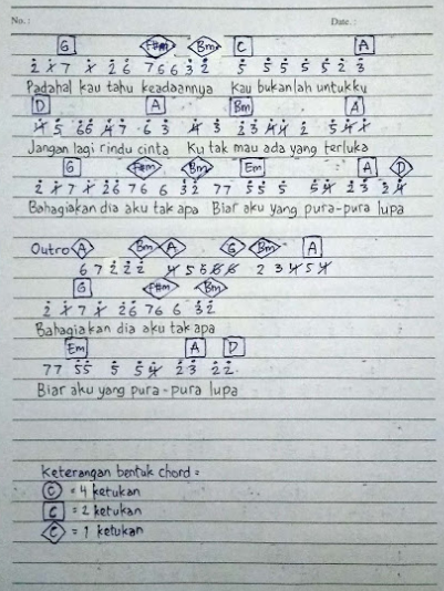 Not Pianika Dan Lirik Lagu Pura Pura Ini kunci gitar dan lirik lengkapnya.